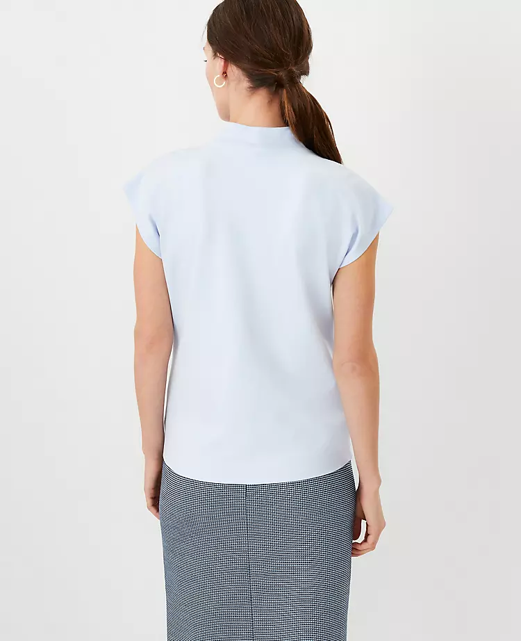 Effortlessly casual, our mock neck top channels everyday ease. Mock neck. Cap sleeves. Front button placket.