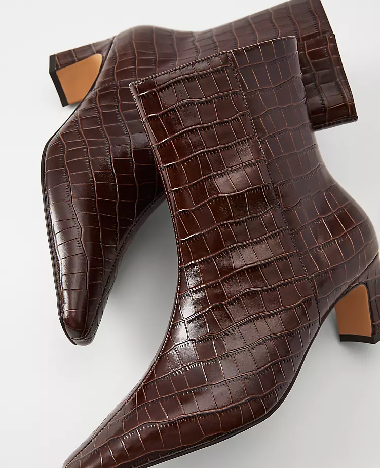 Finding the perfect balance between high-fashion texture and everyday comfort can be a challenge. These croco-embossed leather booties solve that dilemma, offering a rich chocolate finish that adds instant luxury to any outfit while ensuring you stay comfortable from morning to night.