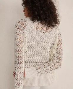 Haven Well Within Organic Cotton Linen Open Stitch Crewneck Sweater Full Moon Grey