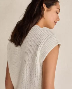Haven Well Within Organic Cotton Linen V-Neck Shaker Stitch Sweater – Ivory
