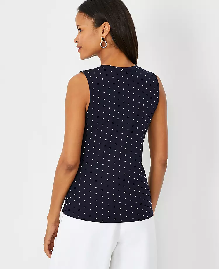 We’ve added an asymmetrical drape to our cotton crew neck shell to cinch an extra flattering fit. Crew neck. Sleeveless.