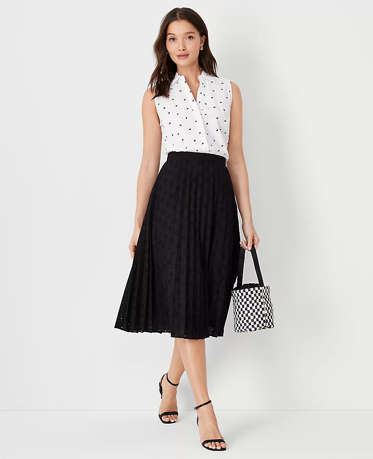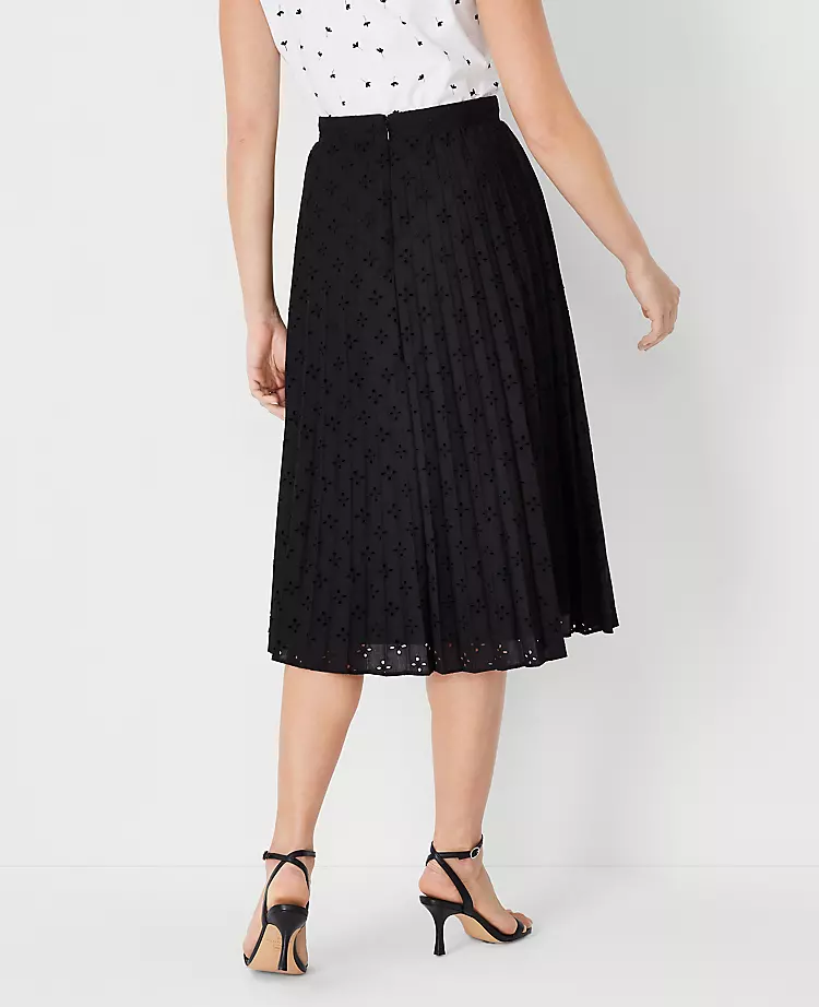Effortlessly transition through the warmer seasons with this stunning pleated midi skirt. Crafted with intricate cotton eyelet embroidery, this piece offers a fresh, airy feel that combines timeless style with modern comfort. Whether you are heading to a garden party or a casual brunch, its flowy silhouette ensures you stay cool and chic all day long.