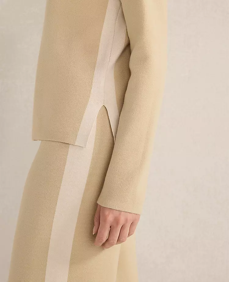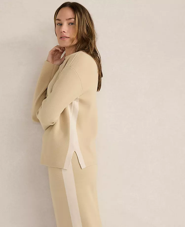 Part of the Haven Well Within collection, this Tuxedo Stripe Funnel Neck Pullover is designed to be your new favorite resource for wellbeing and relaxation. Balancing timeless silhouettes with modern accents, this piece transforms downtime into an elegant experience. Whether you are lounging at home or enjoying a quiet morning, its sophisticated tuxedo stripe and flattering funnel neck offer a polished look without sacrificing comfort.