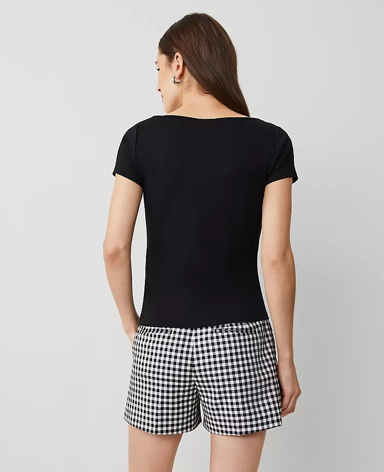 Finding a top that fits perfectly shouldn’t be a challenge. This chic black tee is specifically designed for petite silhouettes, offering a modern, sophisticated look that transitions seamlessly from day to night. With its unique square neckline and high-quality cotton construction, it provides both comfort and style for your everyday wardrobe.
