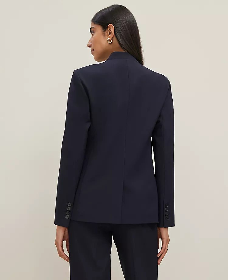 Finding a perfectly proportioned professional layer for a petite frame can be a challenge. This Petite Collarless Blazer eliminates the struggle, offering a sleek, minimalist silhouette crafted from innovative seasonless stretch fabric that moves with you from morning meetings to evening events.