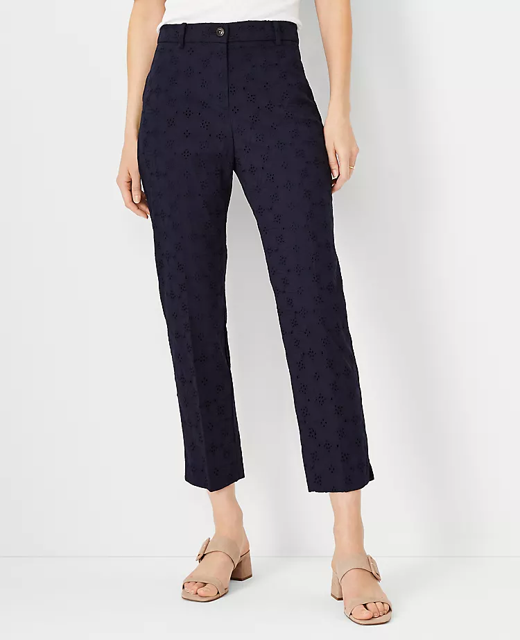 Finding professional attire that fits perfectly shouldn’t be a challenge for petite frames. Our Petite Cotton Eyelet Crop Pants are designed to solve the struggle of proportions, offering a sophisticated, tailored look that transitions seamlessly from the office to evening outings.