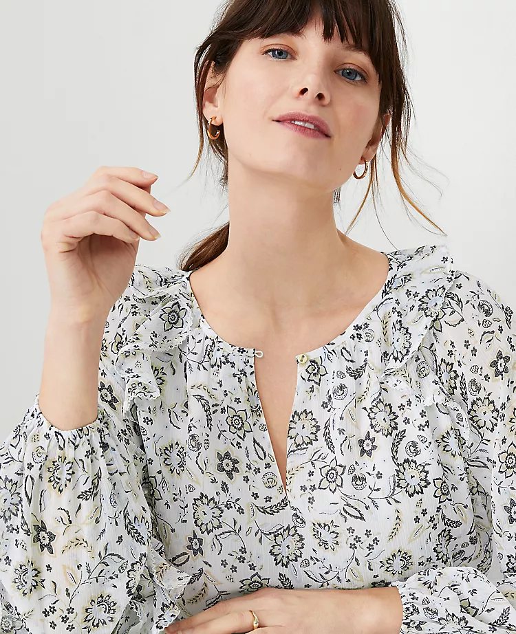 Elevate your professional wardrobe with this petite floral blouse, designed specifically to solve the struggle of finding workwear that is both sophisticated and feminine. This top features romantic pintucks and delicate ruffle details that provide a polished look, ensuring you feel confident and stylish from morning meetings to evening dinners. The thoughtfully tailored petite silhouette ensures a flattering fit without the bulk of standard sizing.