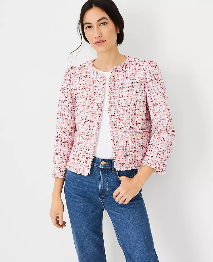 Finding the perfect layer that balances classic sophistication with modern flair can be a challenge for the petite frame. Our Petite Fringe Tweed Puff Sleeve Jacket is the ultimate solution, offering an elevated take on a forever-favorite silhouette. Whether you are heading to a high-stakes meeting or a business lunch, this jacket provides a polished, structured look without sacrificing comfort.