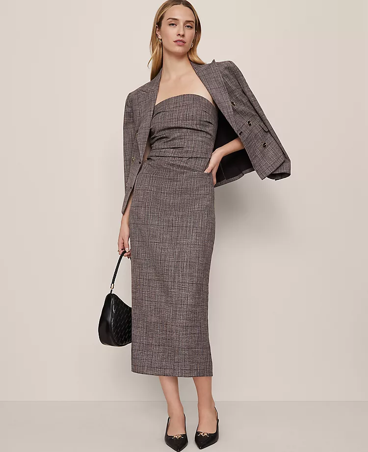 Finding the perfect fit for smaller frames shouldn’t mean sacrificing style. This Petite Strapless Midi Dress combines a sophisticated column silhouette with a classic plaid pattern, offering a polished look that is expertly proportioned for petite heights. Whether you are attending a cocktail party or a formal dinner, this dress ensures you stand out with effortless elegance.