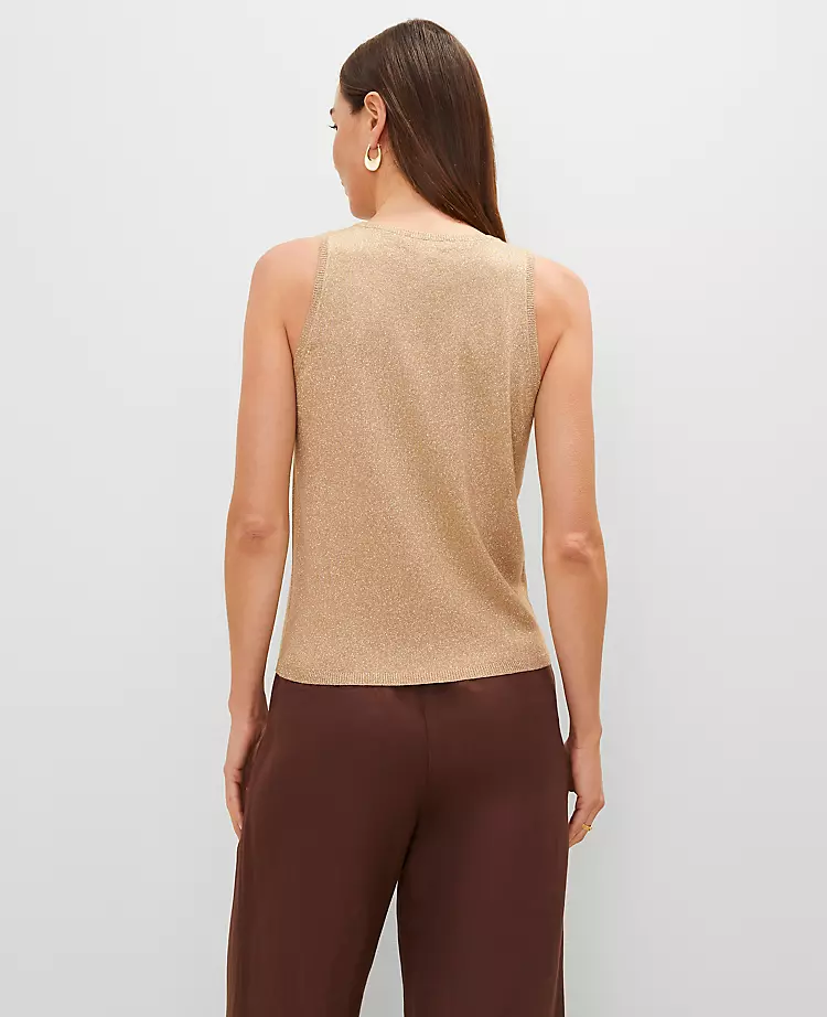 Add a touch of sophisticated radiance to your wardrobe with this versatile petite sweater shell. Designed to bridge the gap between daytime professionalism and evening elegance, this sleeveless top features a subtle metallic finish that catches the light without being overpowering. Its modern, softly fitted silhouette makes it the perfect layering piece under a blazer or a standalone statement for your next event.