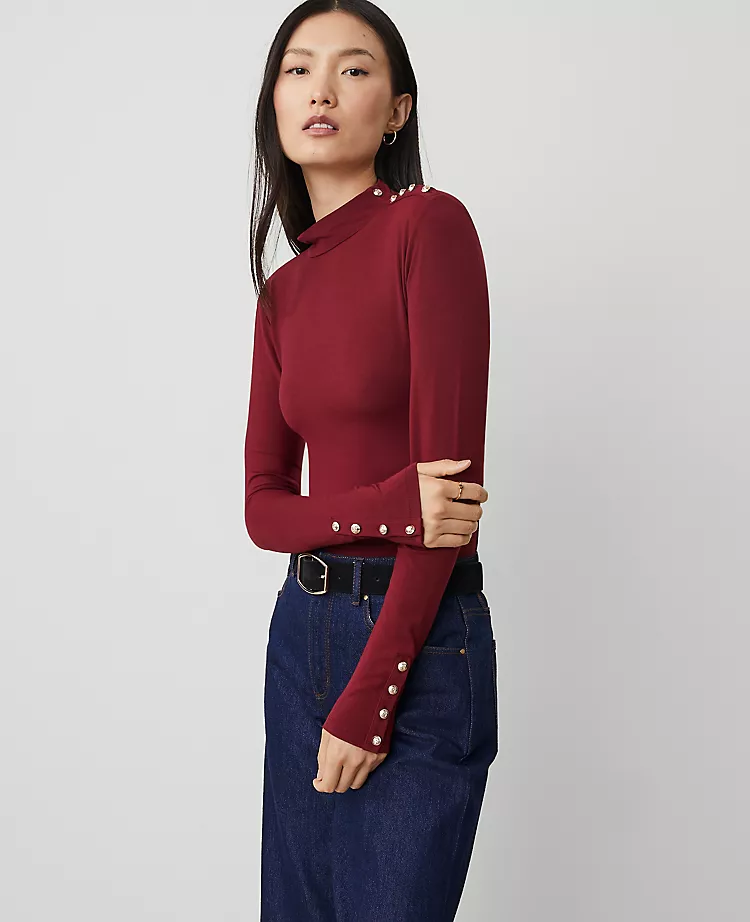 Finding the perfect layer that balances comfort and professional polish can be a challenge for petite silhouettes. This Mock Neck Button Top solves that with a specifically tailored length and a rich, seasonal Deep Auburn hue that transitions seamlessly from the office to evening outings. The elegant shoulder and cuff plackets add a touch of refined detail, making it a standout staple for your seasonal wardrobe.