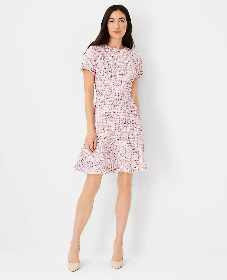 Refresh your professional rotation with a dress that transitions seamlessly from the office to after-hours events. This Petite Multicolored Tweed Flounce Dress offers a vibrant take on a classic texture, combining a tailored fit with a playful flounce hem to keep you looking sharp and feeling confident throughout your busiest days.