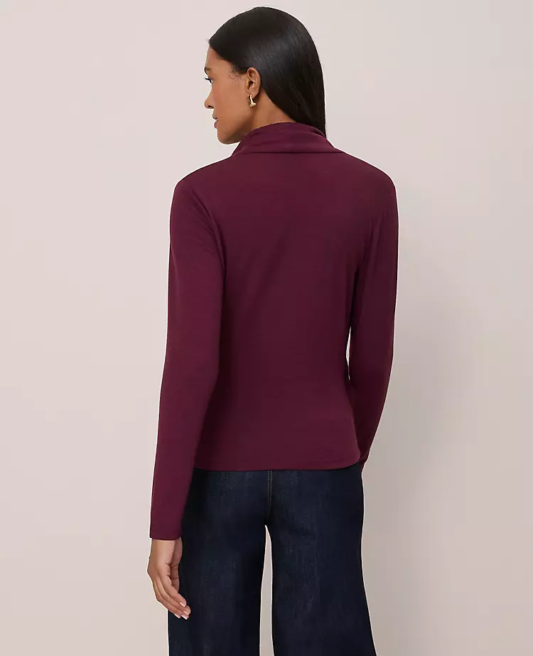 Finding the perfect balance between professional elegance and all-day comfort can be a challenge for petite frames. This Petite Shawl Collar Wrap Top in Poised Plum is the ideal solution, offering a sophisticated, tailored look that transitions effortlessly from the office to evening outings.