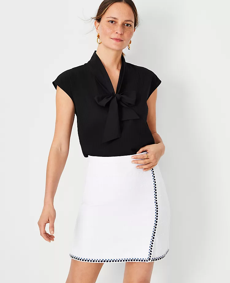 Finding the right workwear that balances a professional look with a petite-friendly cut can be a challenge. Our Petite Tie Neck Cap Sleeve Top is designed specifically for your proportions, offering a sophisticated V-neckline with a charming tie detail that adds a soft, feminine touch to your office rotation.