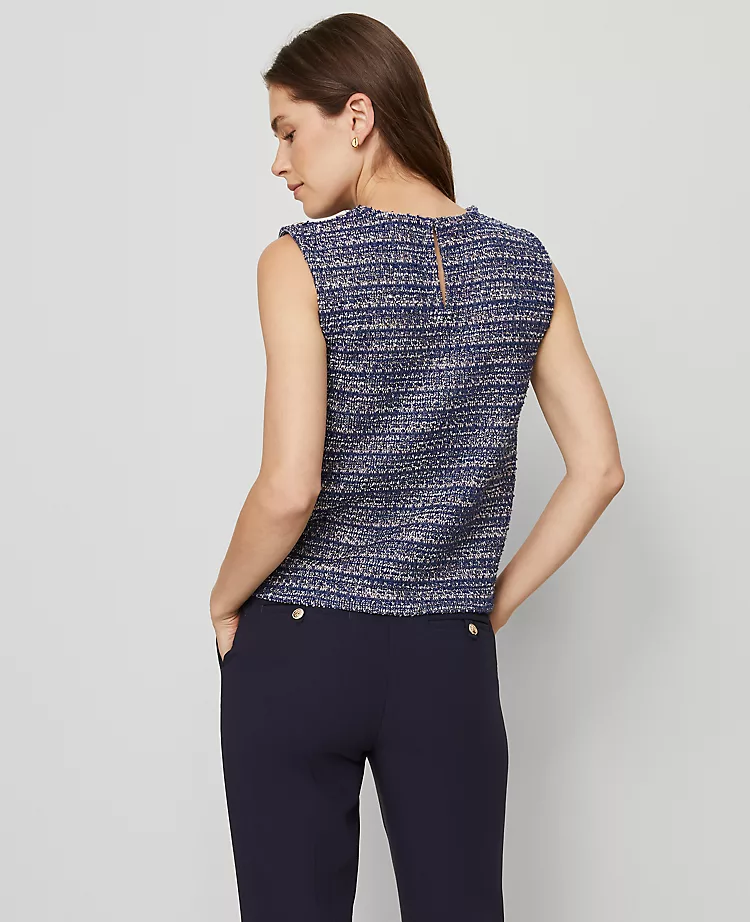Finding a sophisticated layer that fits a petite frame perfectly can be a challenge. This Petite Tweed Patch Pocket Top is designed to solve that, offering a tailored silhouette that provides a polished look without the bulk. Whether paired with trousers for the office or denim for a weekend brunch, this sleeveless blouse adds instant texture and refinement to your outfit.