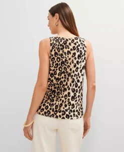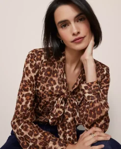 Petite Animal Print Satin Button Down Shirt – Pale Sandalwood