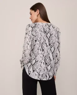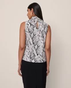 Petite Snake Print Cowl Neck Blouse – Elegant Winter White Sleeveless Top