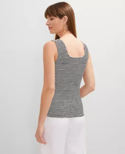 Petite Striped Scoop Neck Tank Top – Classic Black Sleeveless Essential