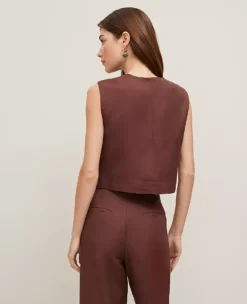 Petite Cropped Linen Blend Vest with Patch Pockets in Rich Walnut
