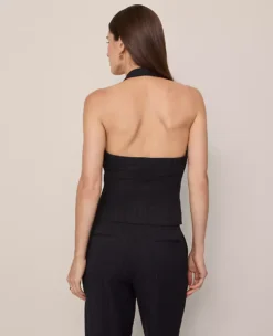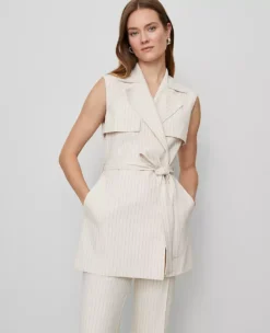 Petite Striped Trench Vest – Black & Cream Sleeveless Jacket
