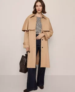Petite Plaid Wool Blend Trench Coat with Flattering Belted Waist