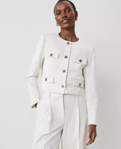 Petite Pinstripe Crew Neck Jacket – Professional Cropped Outerwear