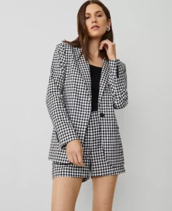 Petite Relaxed Double Breasted Long Blazer in Linen Blend – Gulf Stream Blue