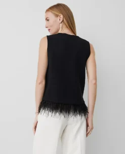 Petite Rhinestone Embellished Shell with Feather Trim – Black