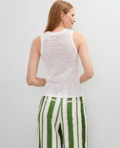 White Petite Pointelle Sleeveless Sweater Shell – 100% Cotton