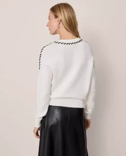 Petite Whipstitch Crew Neck Sweater – Chic Contrast Detail Knit