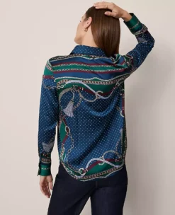Petite Mock Neck Top – Chain Link Night Garden Long Sleeve Knit