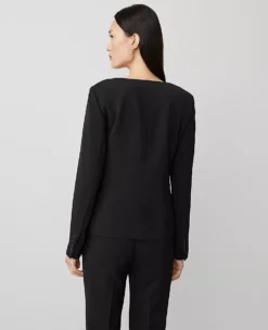 Tailored Petite White Tweed Short Sleeve Jacket with Point Collar