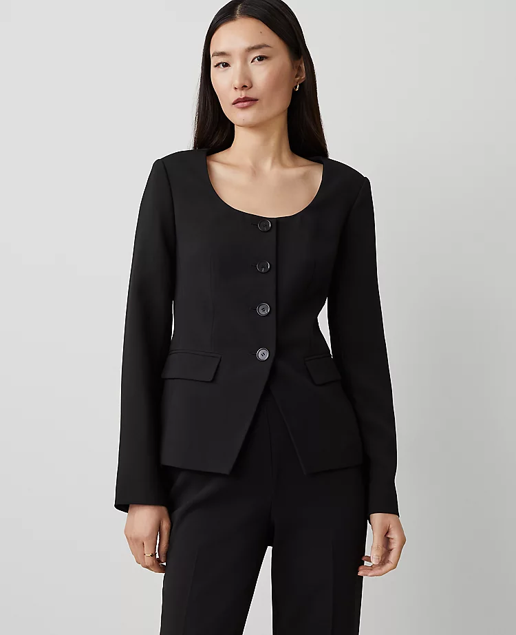Finding a blazer that balances a sharp, tailored look with all-day comfort shouldn’t be a struggle. Our Fluid Crepe Fitted U-Neck Jacket is designed to provide a streamlined, polished silhouette without the stiffness of traditional suiting. The unique U-neckline offers a fresh, feminine alternative to standard lapels, making it the perfect transition piece from the office to an evening out.