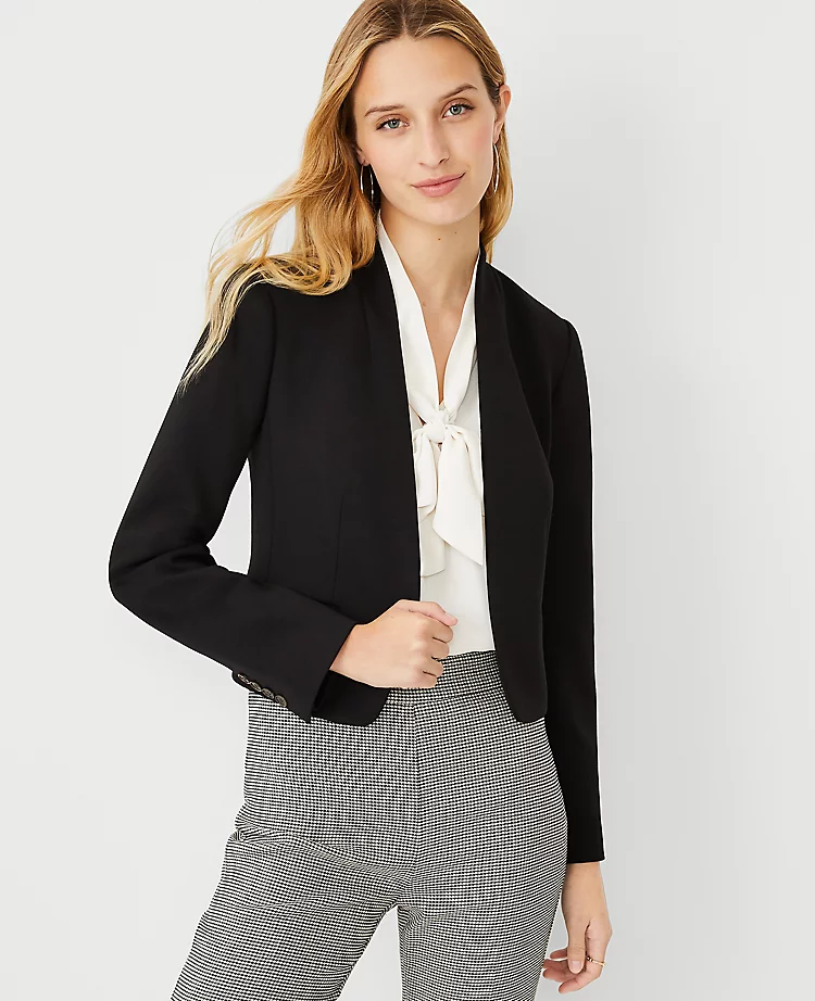 The stretchy yet sophisticated wrinkle-resistant fabric is comfort-chic at its finest. It also plays very well with others—mix and match the collection with ease. Stand collar. Long button-open sleeves allow for versatility in styling. Open front. Front besom pockets. Lined. Shop all Double Knit Suiting