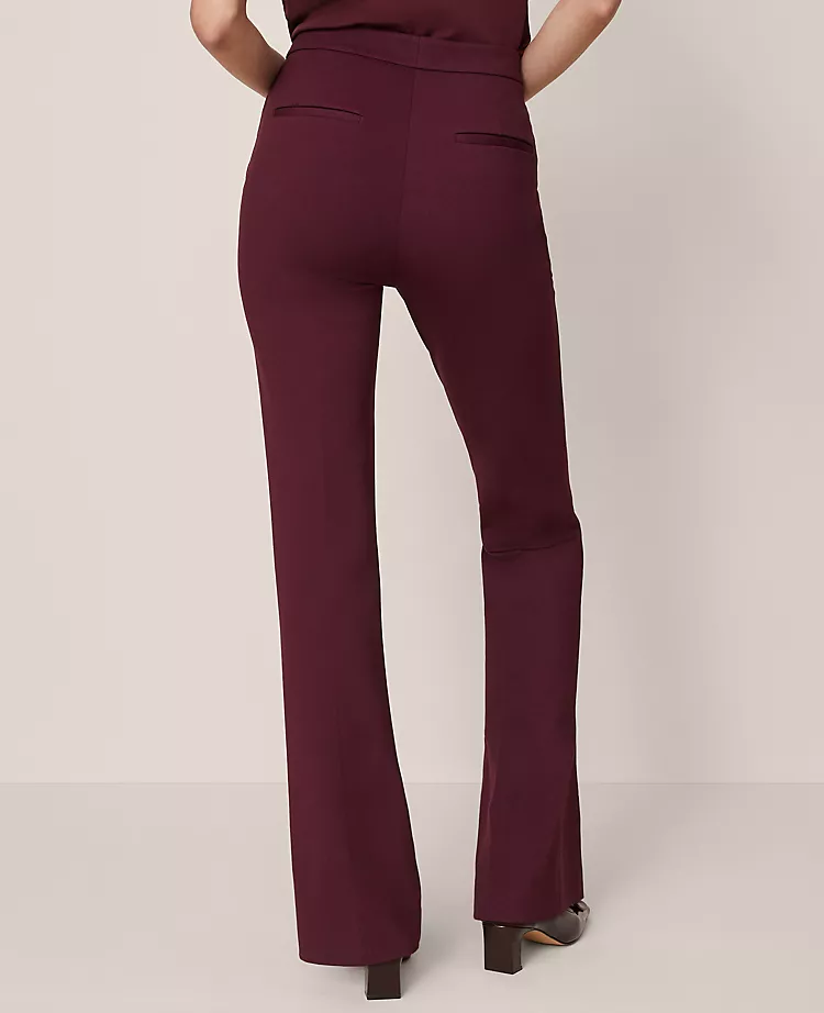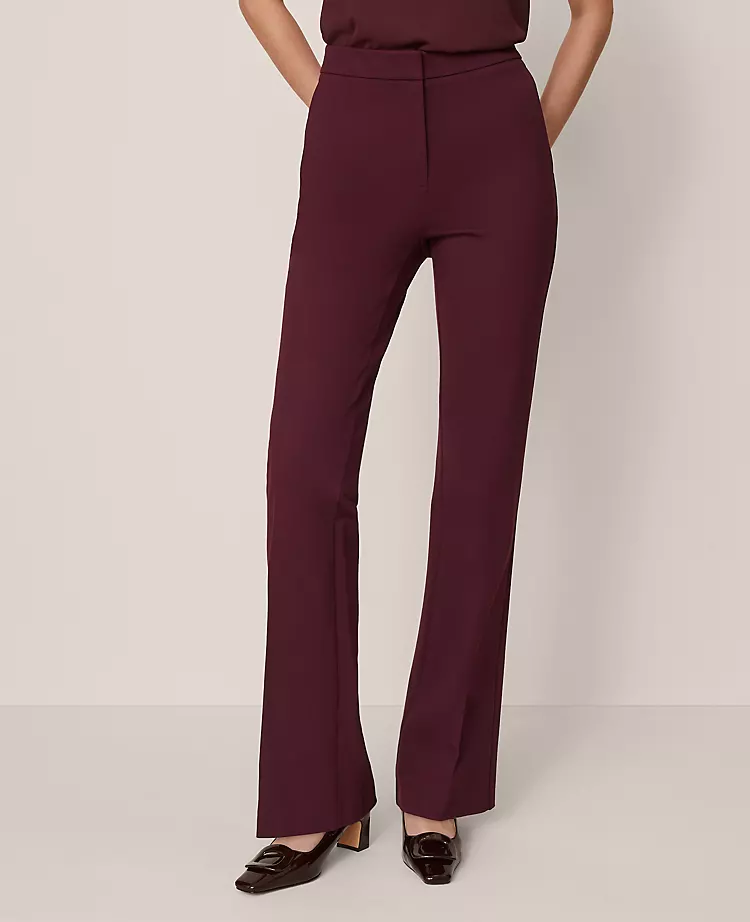 These skinny flare pants are the perfect balance of modern styling and timeless detail. Front zip with double hook-and-bar closure. Front off-seam pockets. Back besom pockets.