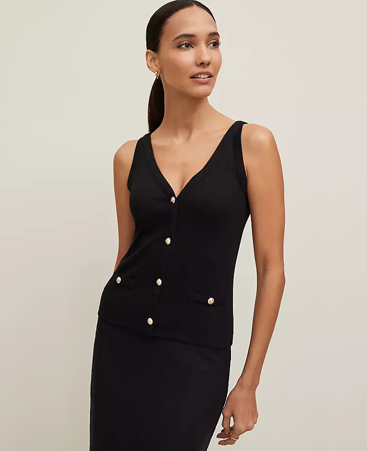 Elevate your everyday wardrobe with this sophisticated petite tank top, designed to solve the struggle of finding the perfect fit for smaller frames. Combining a textured soft-knit feel with a sleek black finish, this versatile staple offers a flattering silhouette that works beautifully as a standalone piece or a polished base layer.